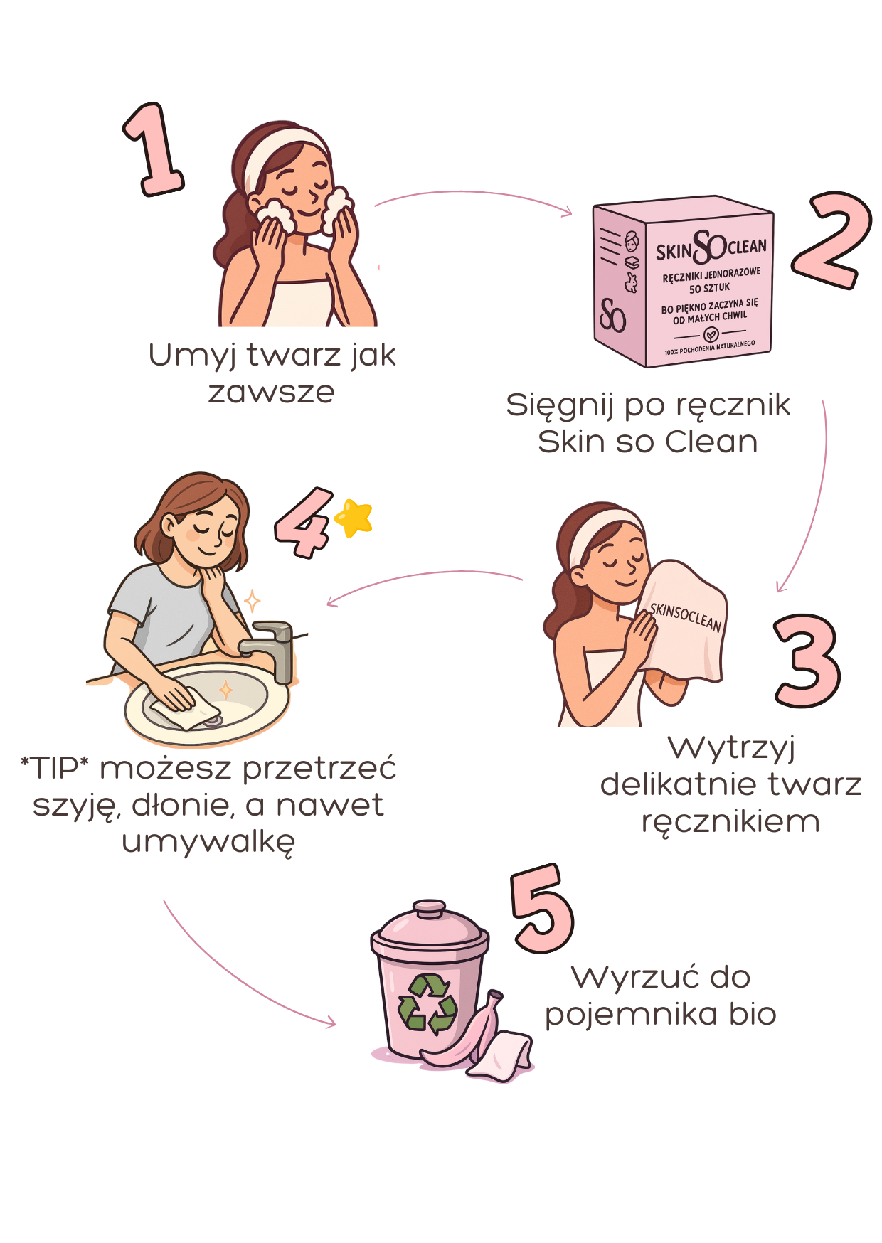 Tradycyjne ręczniki wielokrotnego użytku mogą być siedliskiem bakterii, które negatywnie wpływają na stan Twojej skóry. Skin so Clean powstało z potrzeby zmiany codziennej rutyny pielęgnacyjnej — na czystszą, bezpieczniejszą i bardziej higieniczną.